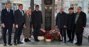 Васил Шәйхразыев Кыргызстанда Муса Җәлил бюстына чәчәкләр салды