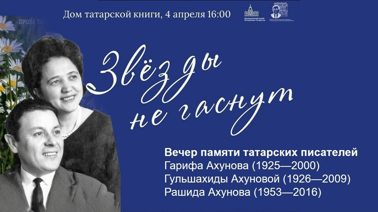 Guests will be told about two new books: a collection of prose by Garif Akhunov titled “Yoldyzlar kalka” in the Tatar language, and a book in Russian titled “Prose of Tatar Writers: Garif Akhunov. Guldshahida” (2026, compiled by Nailya Akhunova, literary editor Boris Vayner).