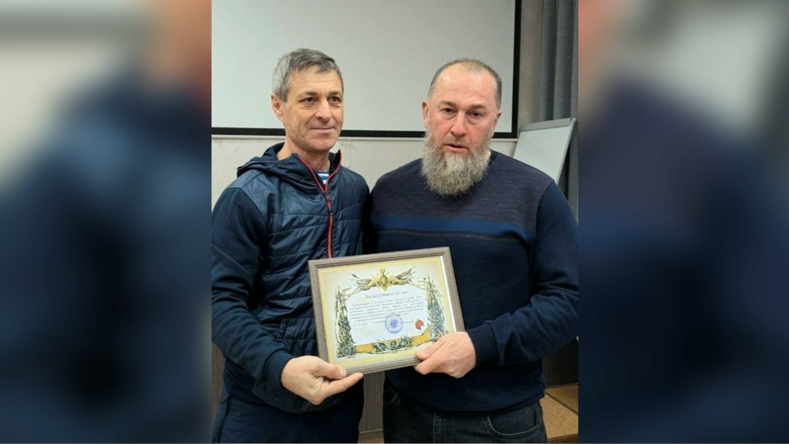Волонтёр Валентин Карпов, осуществляющий доставку гуманитарного груза из Челно-Вершинского района в зону СВО, вручил Благодарственное письмо (от командования и личного состава одной из воинских частей) Айрату Мазитову, руководителю управления сельского хозяйства администрации района.