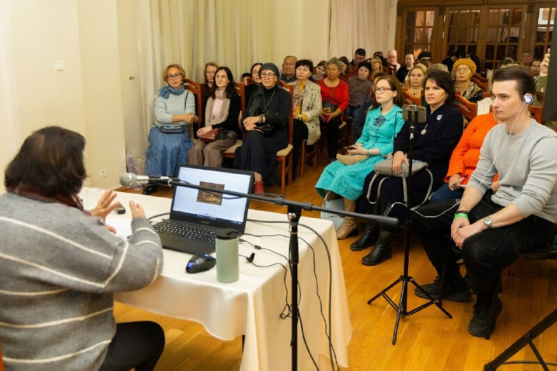 Гости мероприятия не только прослушали лекцию, но и смогли увидеть подлинные образцы узорной кожи из фондов музея, что сделало встречу особенно ценной и наглядной.