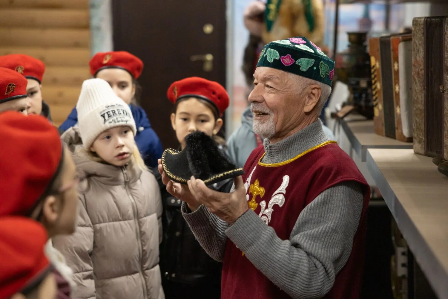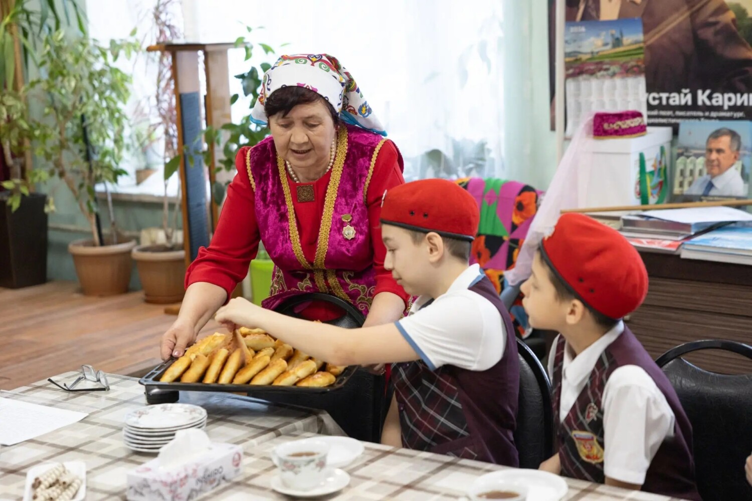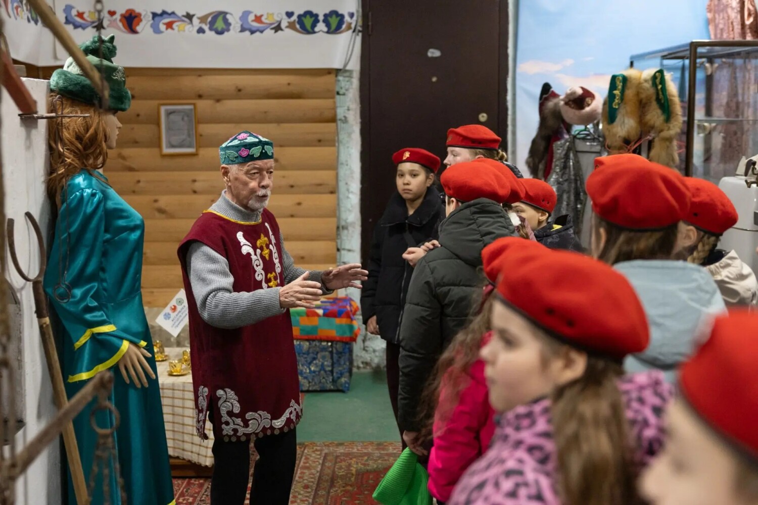 Классный руководитель Яна Норсеева, со своими учениками прибыла в офис организации точно в назначенное время и  их встретили у входа: председатель ОО «Дуслык», Депутат Законодательного Собрания Тахир Ибашев, члены общины Рашид Надыров и Альфия Сафуганова. Первым делом Рашид Надыров, повел учеников в этно-музей организации, где познакомил их с экспонатами музея, рассказал про историю, традиции, культуру, быт татарского и башкирского народов.