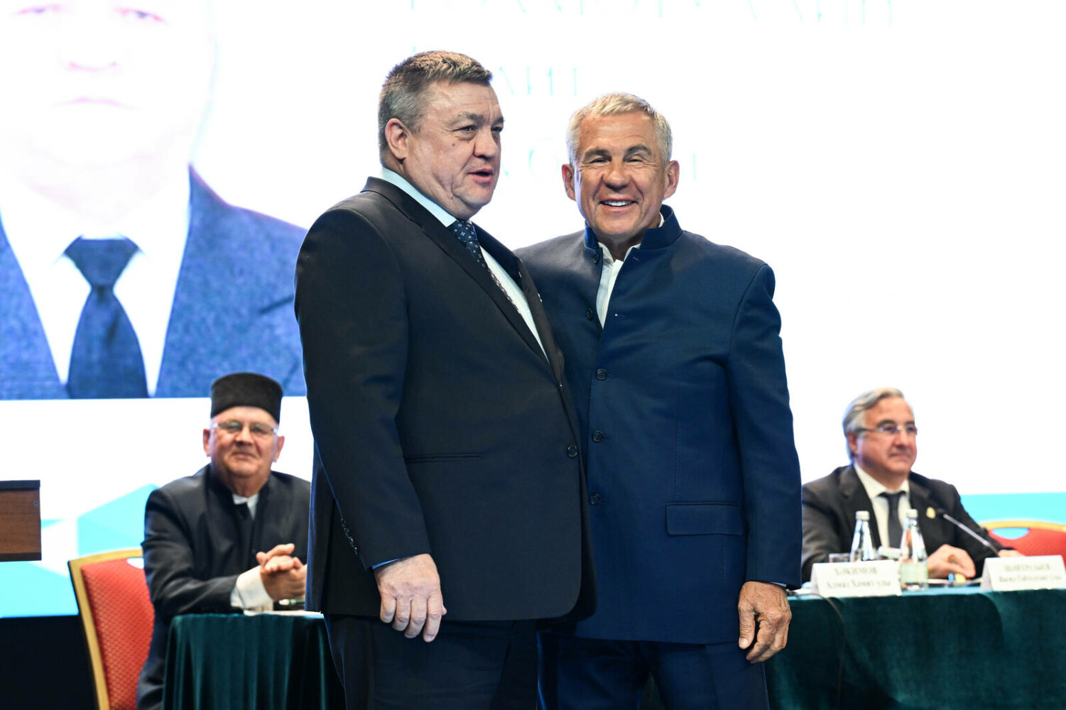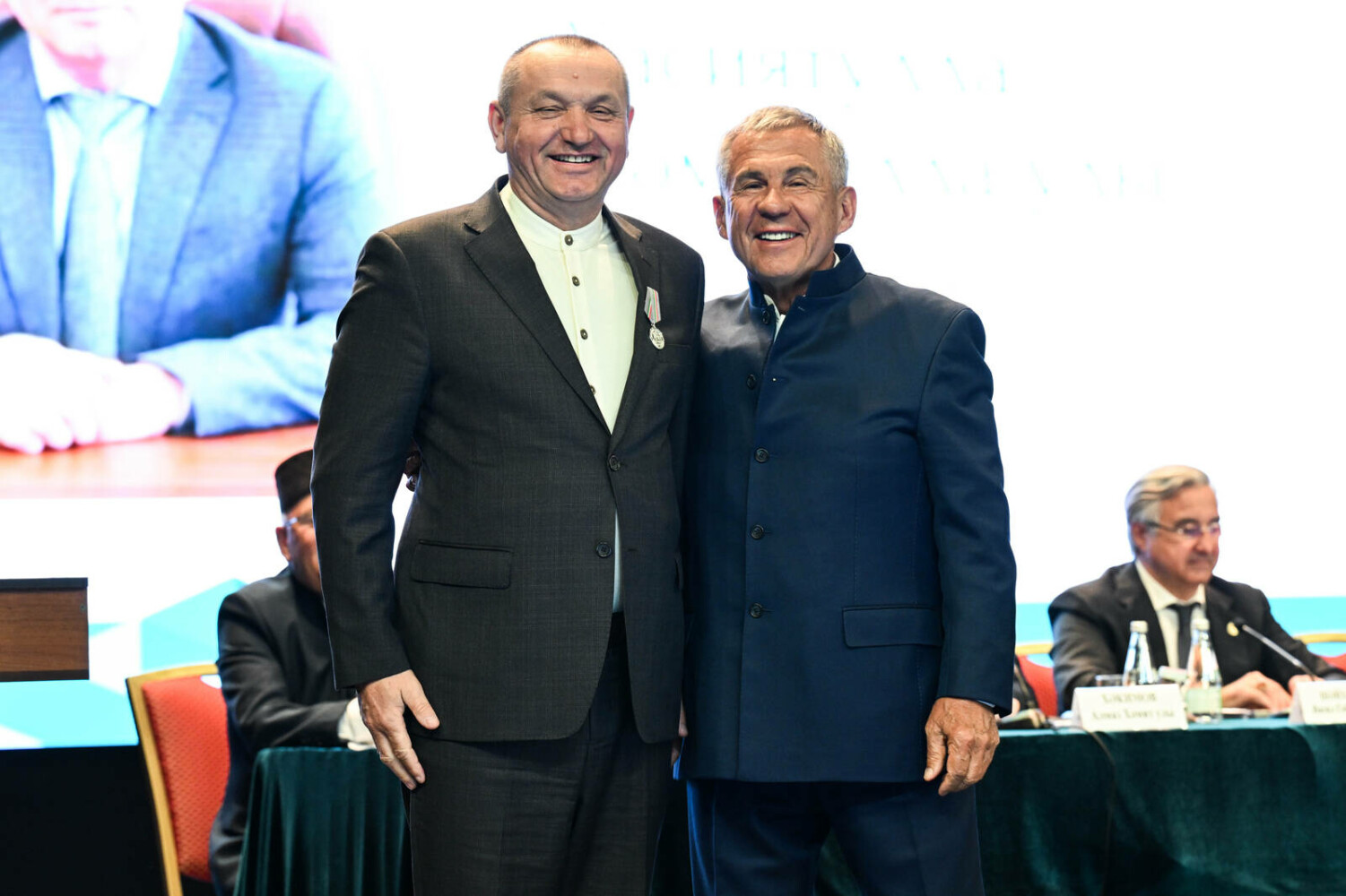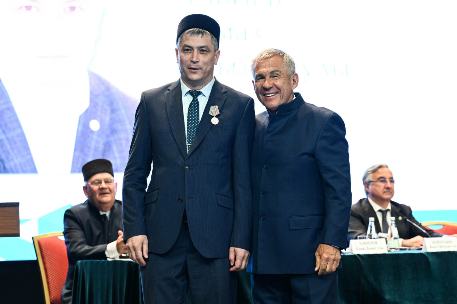 Затем Раис Татарстана вручил ряд государственных наград республики. В частности, орденом «Дуслык» награжден председатель организации «Конгресс татар Кировской области» Равиль Нургалеев. Медаль ордена «За заслуги перед Республикой Татарстан» Рустам Минниханов вручил представителю Региональной национально-культурной автономия татар Нижегородской области Шамилю Нуриманову. Ведущий консультант сектора межрегионального сотрудничества Министерства образования и науки Татарстана Альфия Ахатова, руководитель региональной общественной организации “Интернациональный союз женщин”, генеральный директор ООО “Агрофирма” Колос” Тетюшского района Рима Сафиуллова удостоена медали Республики Татарстан «За доблестный труд».
