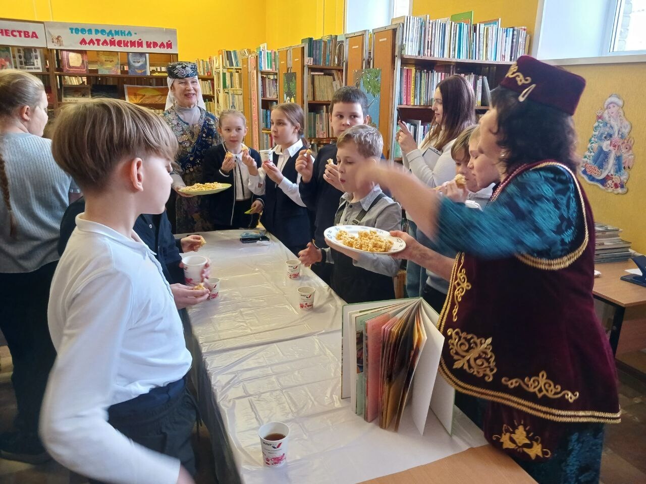 Центр татарской культуры «Дулкын» (Волна) провел познавательную этноэксукурсию для детей МБОУ «Гимназия №22». Мероприятие прошло на площадке библиотеки-филиала №1 им. Н.Г. Дворцова. Активисты АКОО «Дулкын» (Волна) рассказали ребятам об истории татарской культуры, обычаях и традициях, а также познакомили с известными писателями. Ансамбль «Дуслар» исполнил песни на русском и татарском языке.