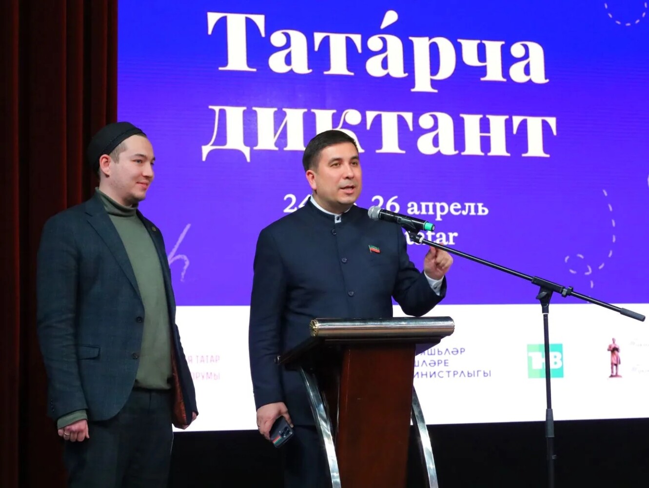 Перед диктантом руководитель Исполнительного комитета Всемирного конгресса татар Данис Шакиров пожелал всем участникам удачи и сказал напутственные слова.