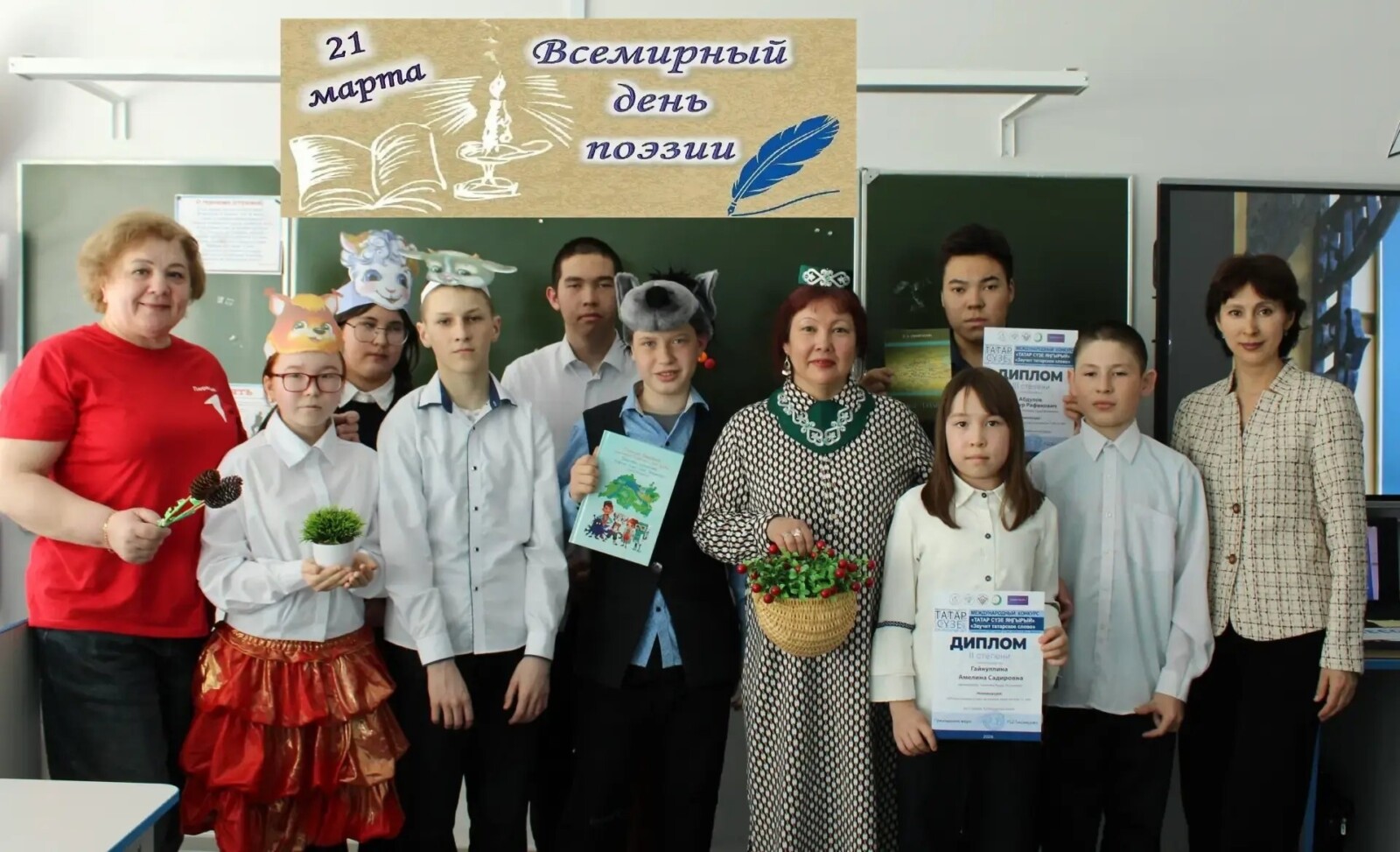 Зульфия Абдулловна прочитала стихотворение Мусы Джалиля на татарском языке “Бер үгет”(о человечности) и вручила дипломы ученикам школы, которые приняли участие в международном конкурсе, посвящённом 120 летию Мусы Джалиля – “Татар сүзе яңгырый” – “Звучит татарское слово”: