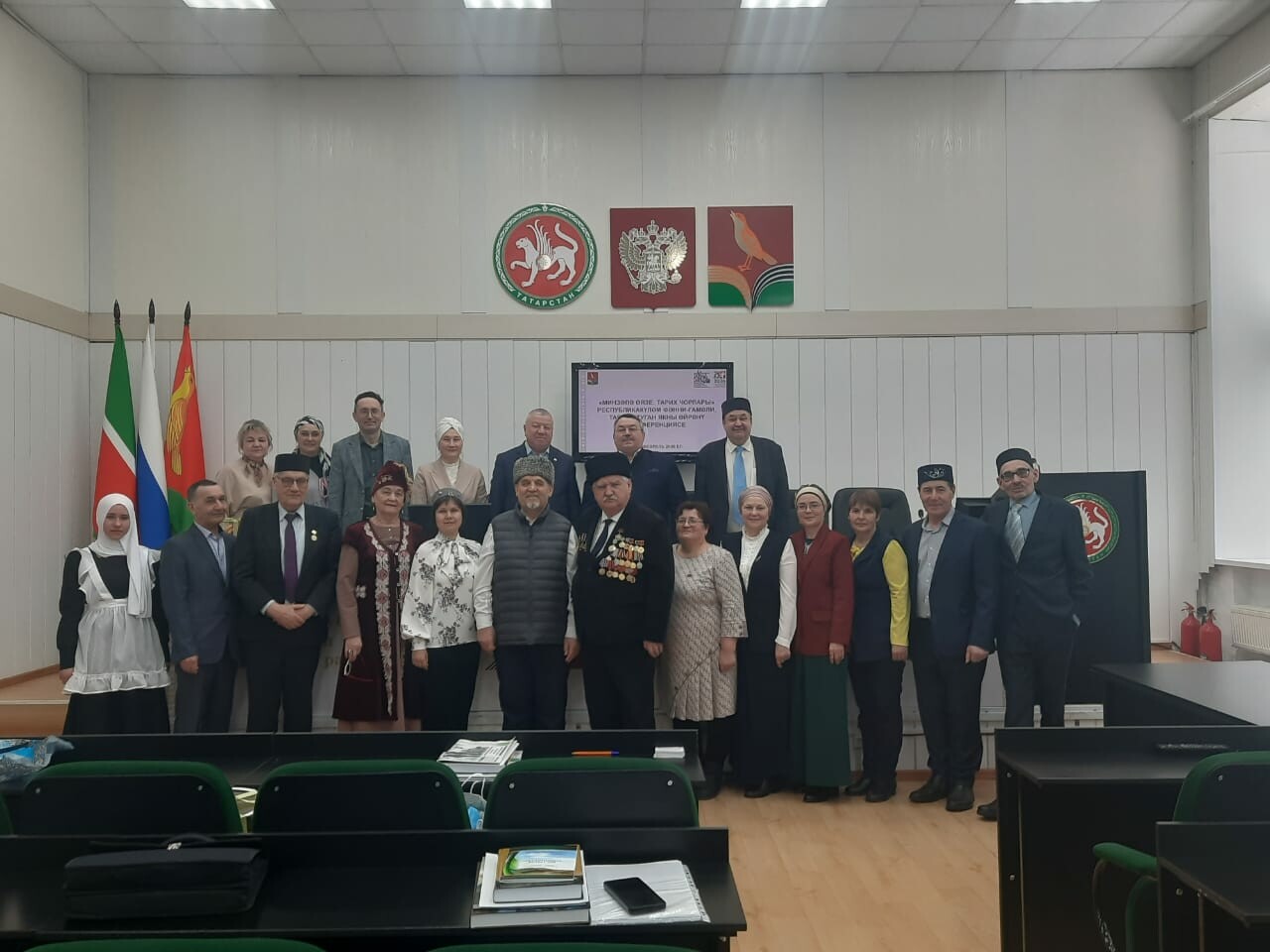 Далее профессор А.А.Бурханов презентовал фотоматериалы по теме «Некоторые итоги сотрудничества ученых и краеведов Татарстана, регионов Российской Федерации, Казахстана и Беларуси по изучению жизни и подвига, увековечиванию героизма и наследия земляков – татар, участников Великой Отечественной войны 1941–1945 гг. (к вопросу изучения жизни и увековечивания подвига татар-антифашистов группы Курмаша-Джалиля).