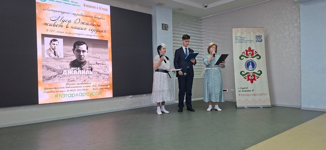 В Центральной библиотеке им. А.С.Пушкина прошло мероприятие, посвященное 120-летию со дня рождения выдающегося татарского поэта Мусы Джалиля. Литературно-музыкальная встреча была организована Национально-культурной автономией татар г. Сургута и оставила после себя приятные впечатления.