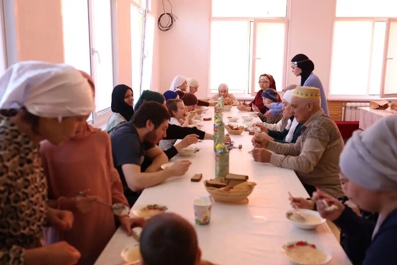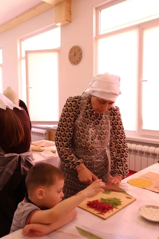 Самое ценное — за одним столом собрались дети, молодёжь и старшее поколение. Вместе замешивали тесто, раскатывали, аккуратно нарезали лапшу, затем приготовили её и разделили за общим столом.