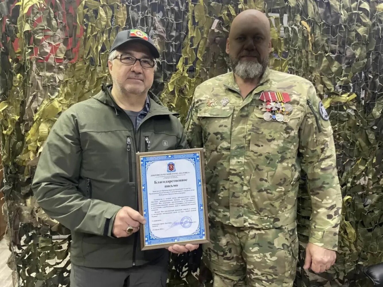 Во время встречи обсудили вопросы по поддержке наших ребят, которые сейчас проходят службу в ЛНР. Военные поблагодарили Председателя Национального Совета Всемирного конгресса татар за помощь и поддержку и вручили Василю Шайхразиеву благодарственное письмо от имени добровольческого отряда “Балтика”.