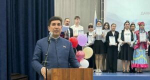 Данис Фанисович Шакиров вручил победителям и призёрам олимпиады по татарскому языку памятные подарки от имени Всемирного конгресса татар.