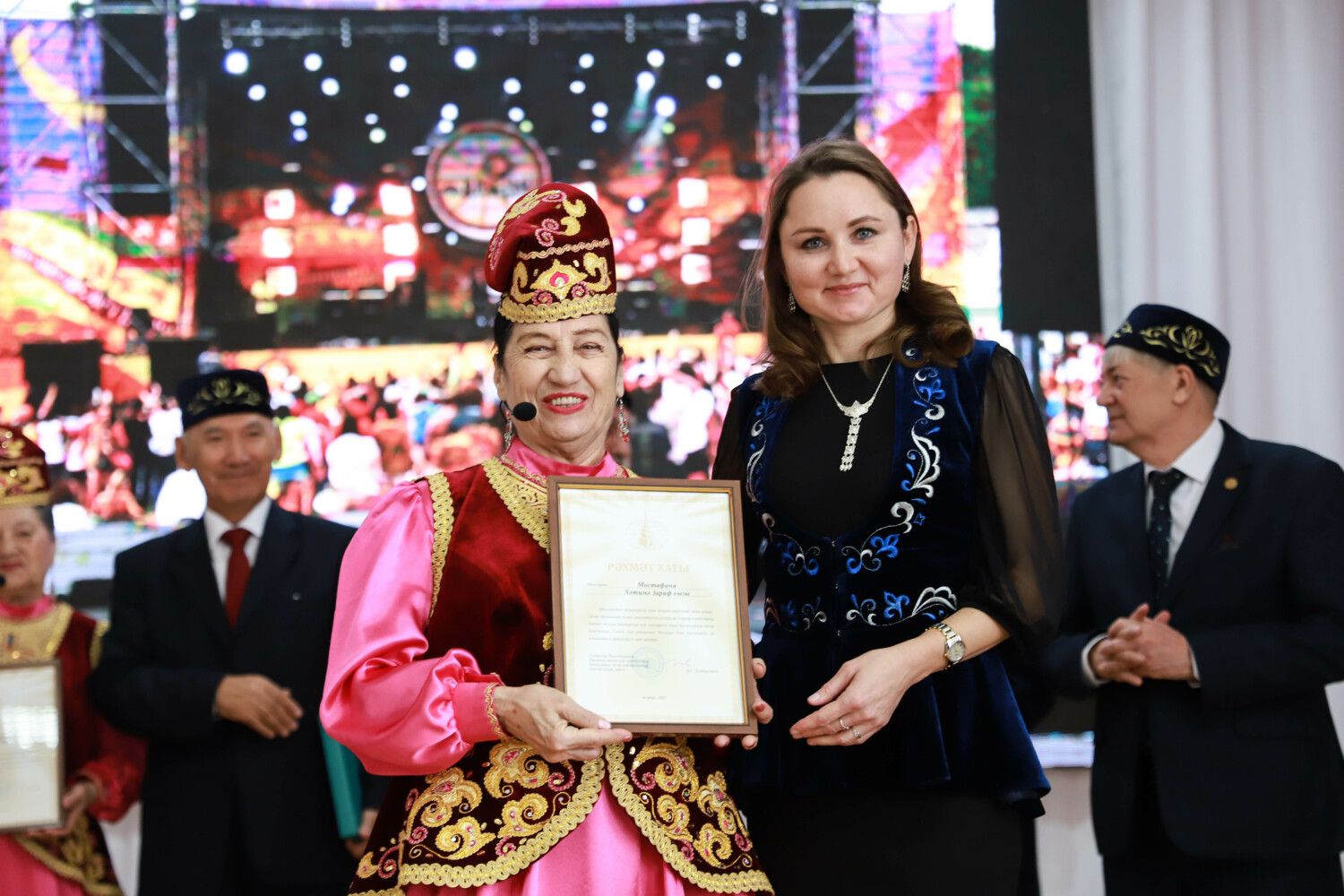 Л.Р.Кутеева Татарстан Республикасы Премьер-министры урынбасары, Бөтендөнья татар конгрессының Милли Шура Рәисе В.Г.Шәйхразыевның тәбрикләү сүзләрен җиткереп, берләшмәнең актив әгъзаларына Бөтендөнья татар конгрессының Рәхмәт хатларын тапшырды.