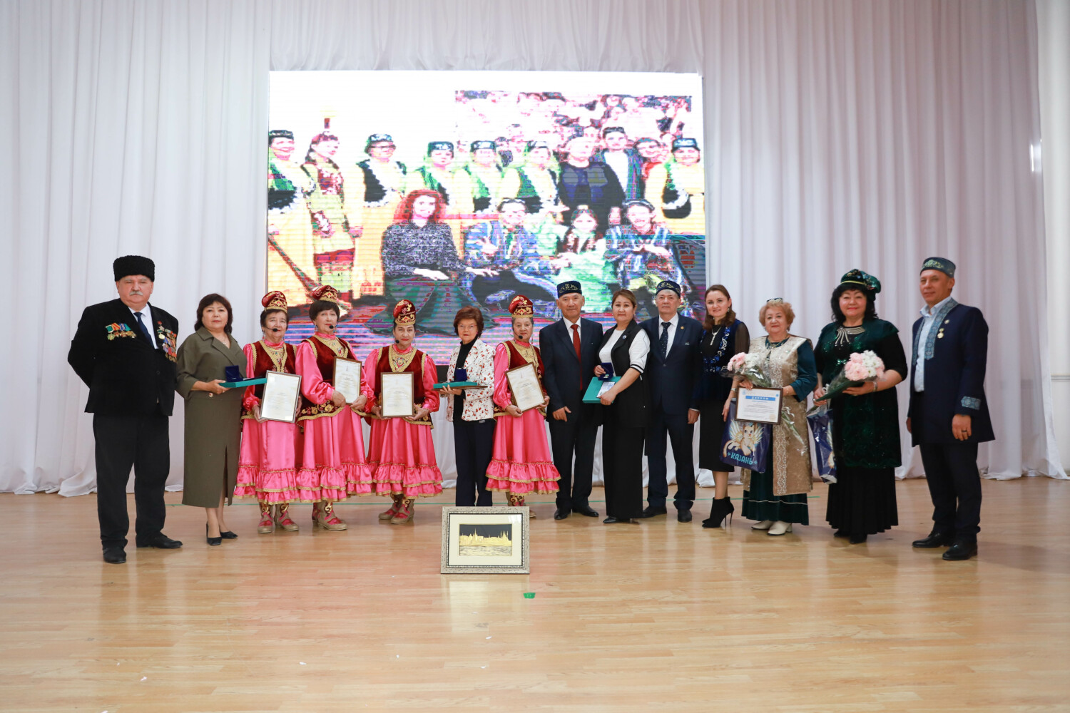 Кичә Татарстанның атказанган артистлары һәм җирле сәнгать әһелләренең чыгышлары белән үрелеп барды.