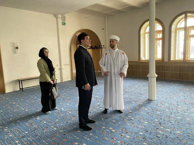 Бүген ул Мостай Кәрим урамында урнашкан “Хәкимия” мәчетендә булды һәм Бөтендөнья татар конгрессы исеменнән урындагы хезмәткәрләргә Коръән тәфсире бүләк итте.
