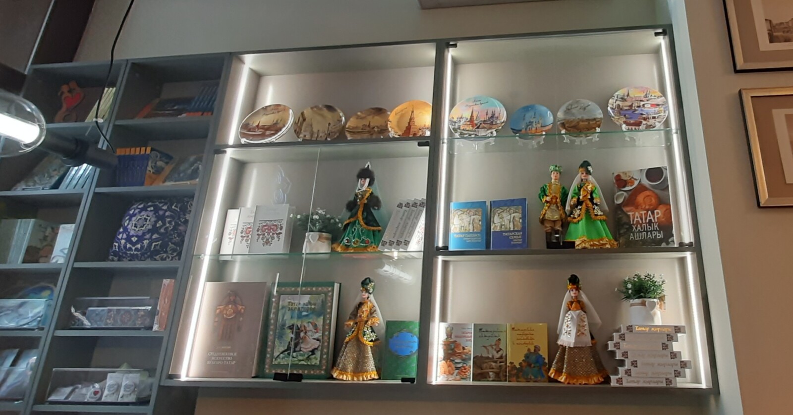 *Китаплардан тыш, кибеттә күп төрле сувенирлар тәкъдим ителә. Алар арасында Татарстан китап нәшриятының эксклюзив бренды белән чыгарылган продукция дә бар.