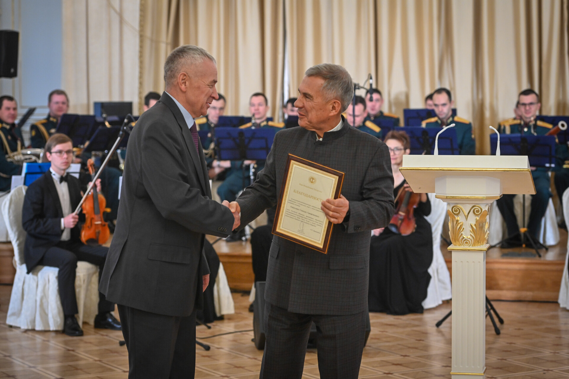 Шулай ук Миңнеханов Социалистик Хезмәт Герое Гөлсинә Җантимировага һәм Россия Герое Газинур Хәйруллинга Татарстан Рәисе Рәхмәт хатлары тапшырды.