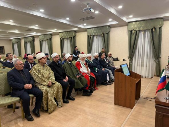 Татарстан Республикасы мөселманнары Диния нәзарәте бинасында Татарстан Республикасы мөселманнары Диния нәзарәте рәисе, Татарстан Республикасы Мөфтие Камил хәзрәт Сәмигуллин Баш мөфти, Россия мөселманнары Диния нәзарәте рәисе Шәйхелислам Тәлгать хәзрәт Таҗетдин һәм делегатлар белән очрашты.