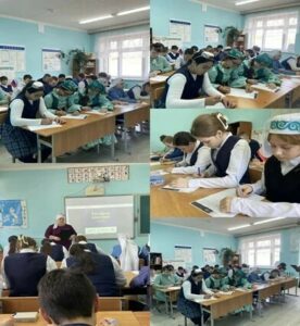 4. Кукмара районының А.Х.Газизуллин исемендәге Югары Арбаш урта мәктәбе укучылары “Татарча диктант” акциясенә кушылды.