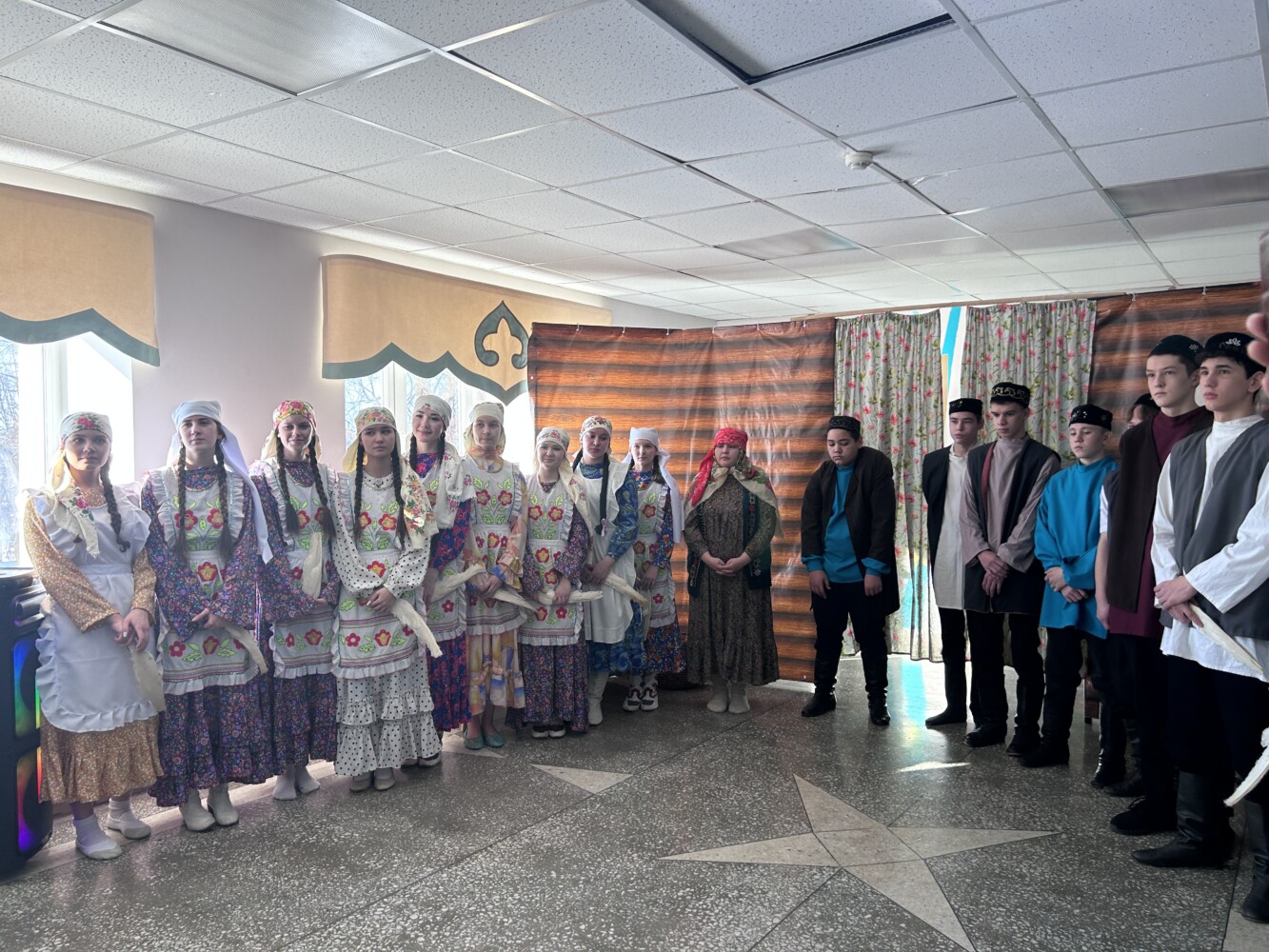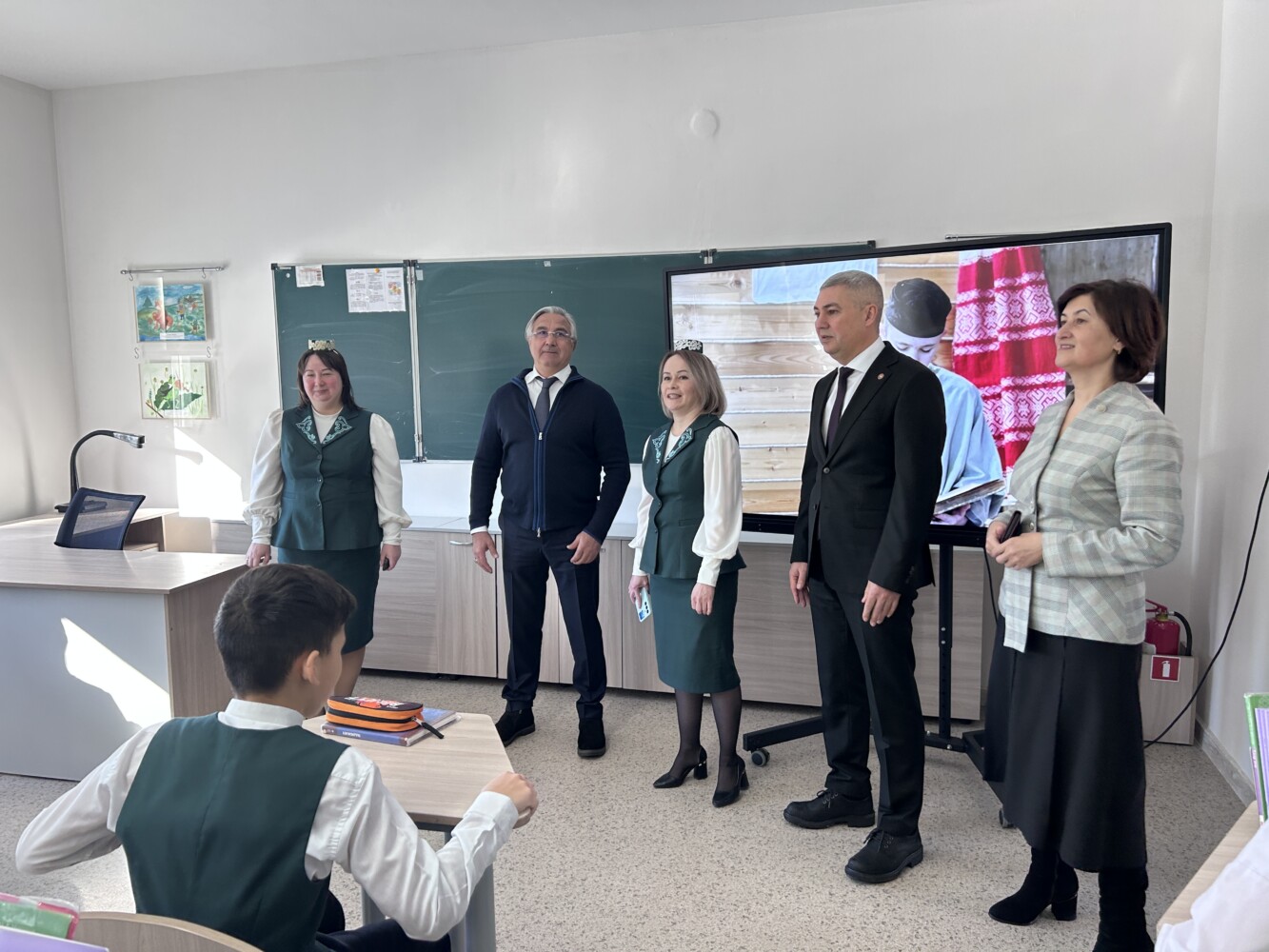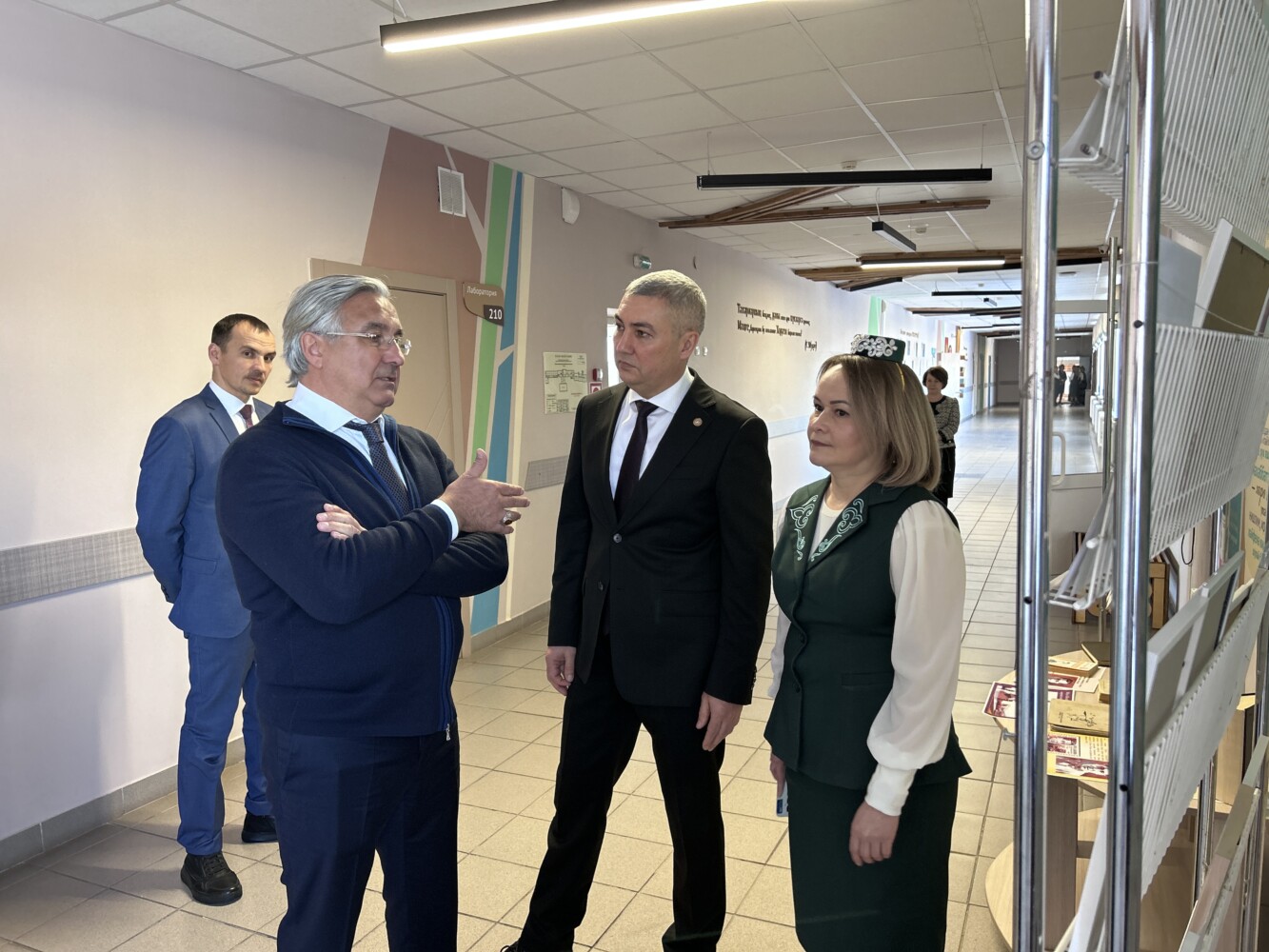 Җитәкчеләр “Батырлык онытылмый” музей почмагында булып, Советлар Союзы Герое, бөек татар шагыйре Муса Җәлилгә һәм махсус хәрби операциядә һәлак булганнарга чәчәкләр салдылар. Шулай ук биредә музей залы, уку кабинетларын карадылар. Мәктәп янында эшләп килүче “Асылташ” балалар театры коллективы кунакларга “Сүнгән йолдызлар” спектакленнән өзек тәкъдим итте.