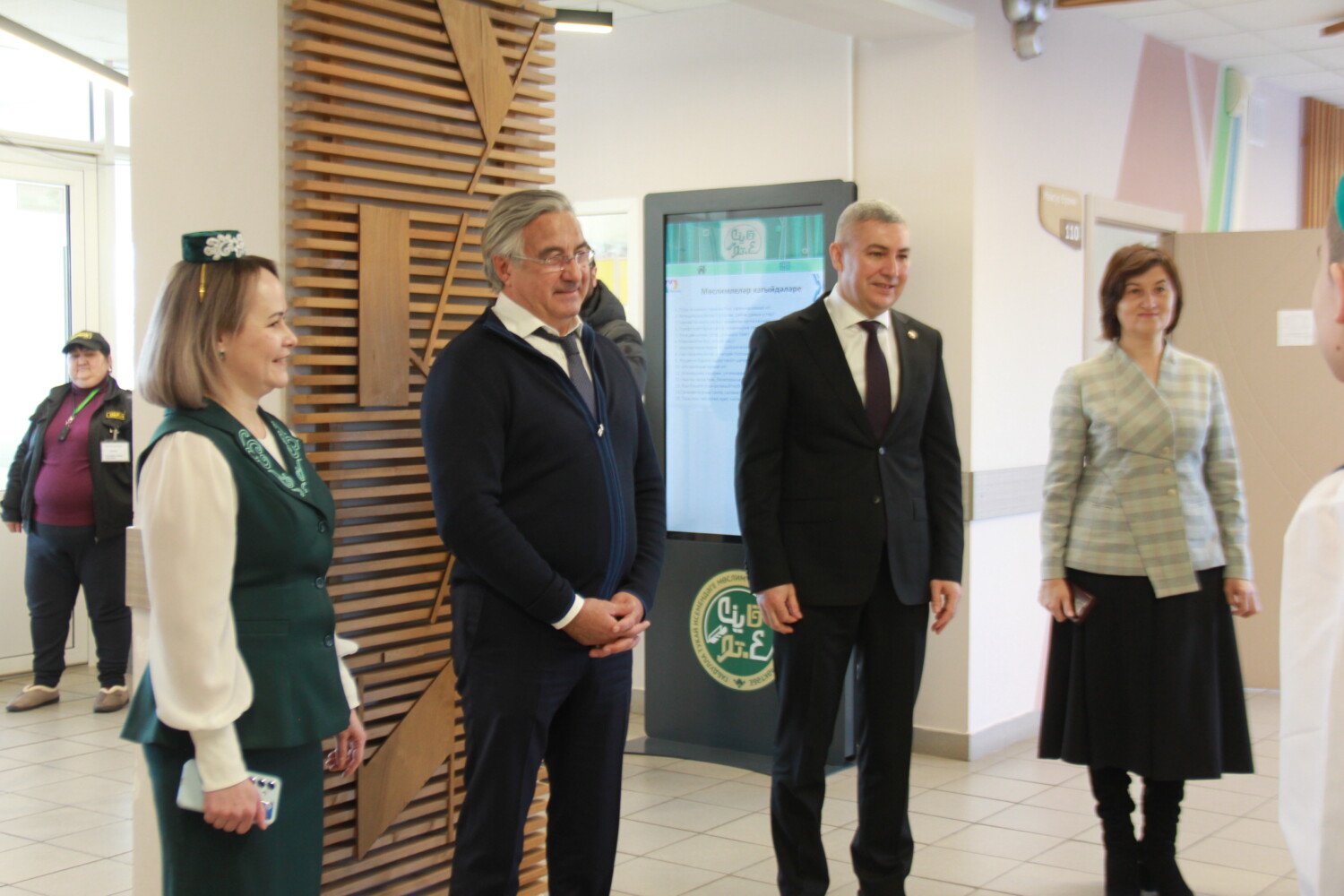 ТР Премьер-министры урынбасары, Бөтендөнья татар конгрессының Милли Шура рәисе Васил Шәйхразыев эш сәфәре барышында Мөслим районы башлыгы Альберт Хуҗин белән берлектә Г.Тукай исемендәге Мөслим урта мәктәбенең эшчәнлеге белән дә танышты.