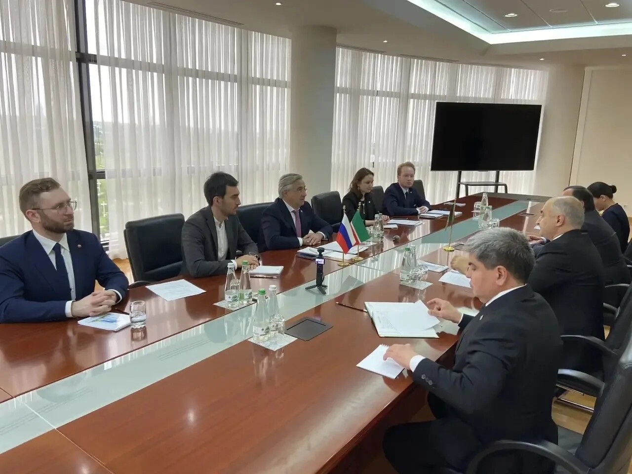 Бүген Татарстан Республикасы Премьер-министры урынбасары, Бөтендөнья татар конгрессының Милли Шура рәисе Васил Шәйхразыев Төркмәнстандагы эш сәфәре барышында Төркмәнстан Тышкы эшләр министрлыгының халыкара мөнәсәбәтләр Институтының дипломатик мөнәсәбәтләр үзәге җитәкчесе Бердынияз Мятиев белән очрашты.